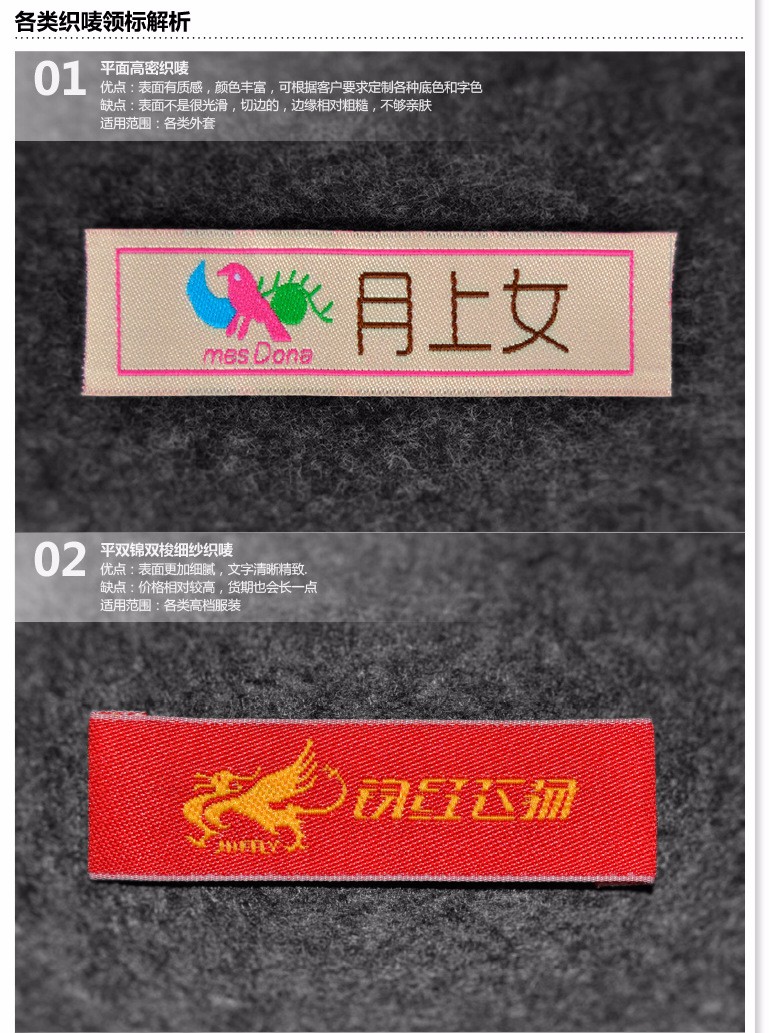 織嘜的應(yīng)用很廣泛,下面是廣州服裝織嘜定做廠家的部分織嘜應(yīng)用展示: