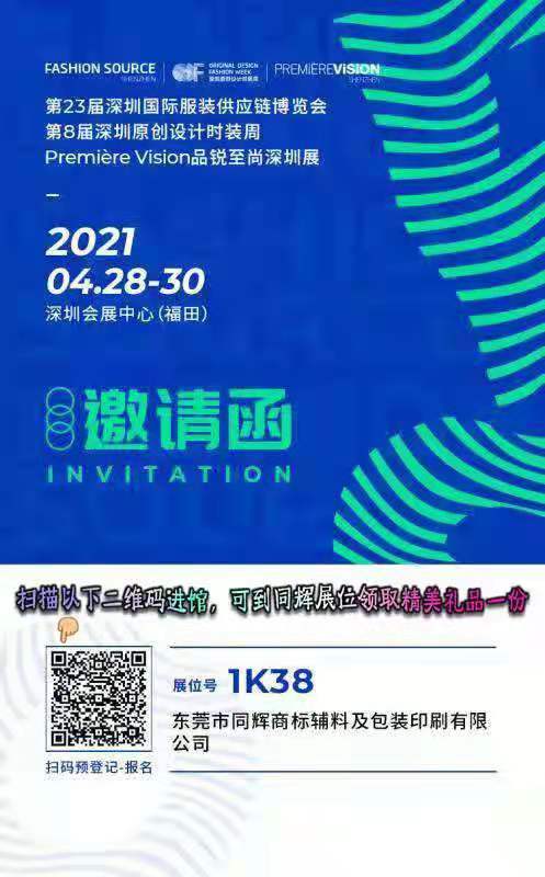 同輝商標(biāo) · 誠邀您參加2021年FS第23屆深圳國際服裝供應(yīng)鏈博覽會(huì),我們現(xiàn)場(chǎng)期待您的光臨